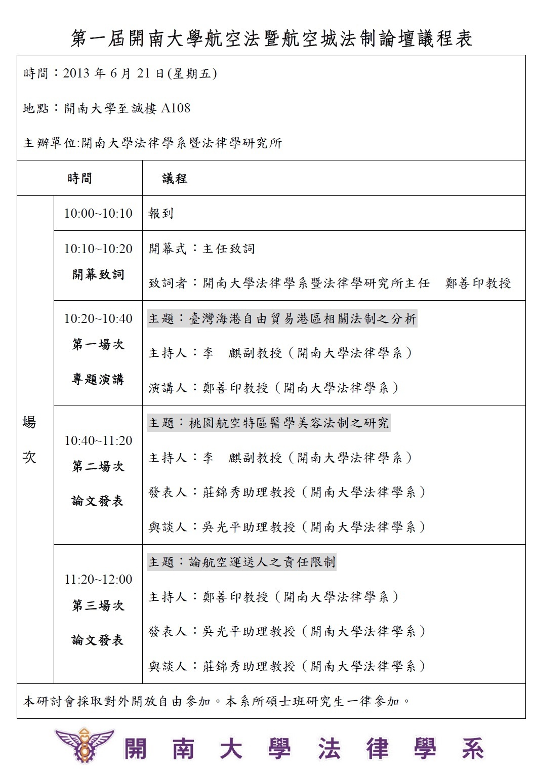 2013.06.21第一屆開南大學航空法暨航空城法制論壇